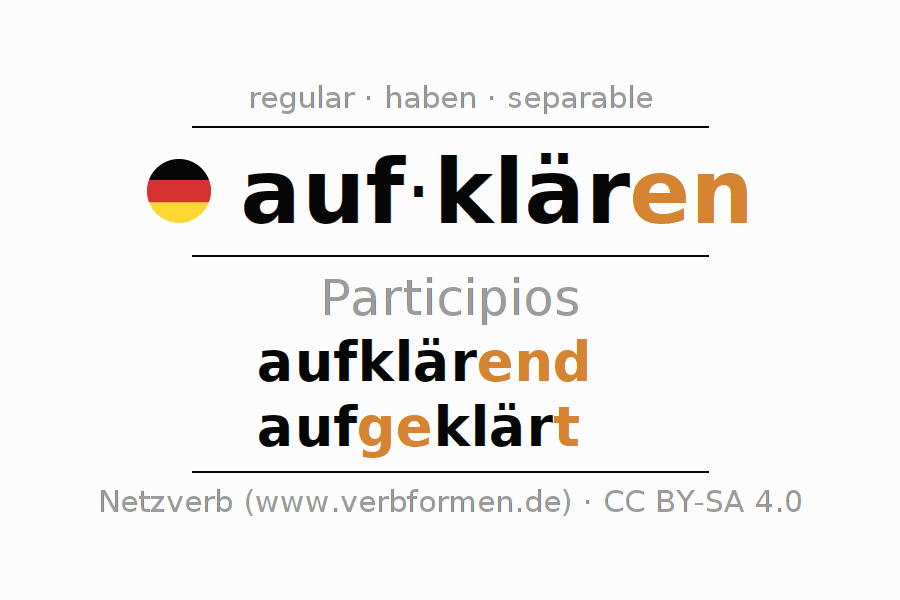 Los participios de aufklären (aclarar, esclarecer) son: aufklärend, aufgeklärt