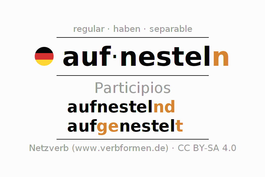 Los participios de aufnesteln (abrir con cuidado) son: aufnestelnd, aufgenestelt