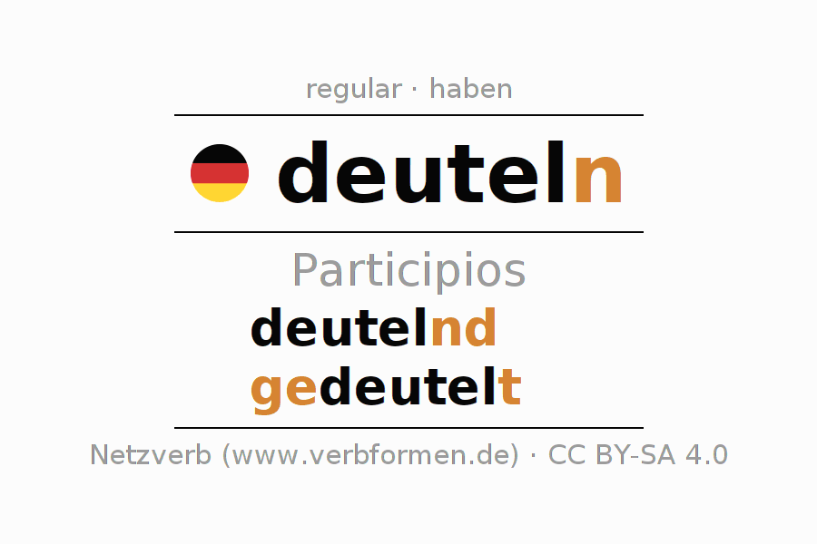 El verbo deuteln, conjugado completamente en todas las personas y números gramaticales en Participio Presente Pasado perfecto.
