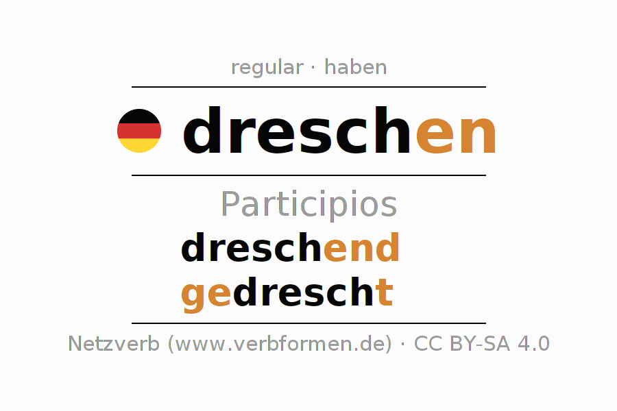 Los participios de dreschen son: dreschend, gedrescht