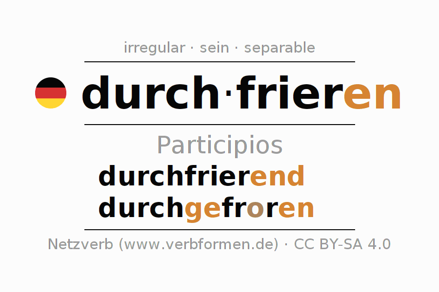 El verbo durchfrieren, conjugado completamente en todas las personas y números gramaticales en Participio Presente Pasado perfecto.