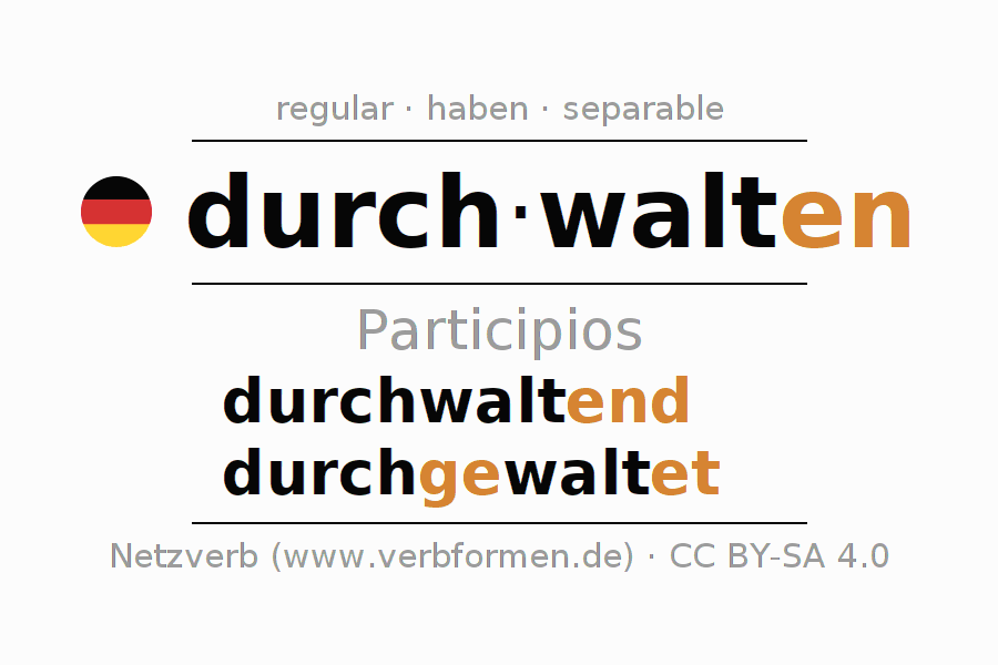 El verbo durchwalten, conjugado completamente en todas las personas y números gramaticales en Participio Presente Pasado perfecto.
