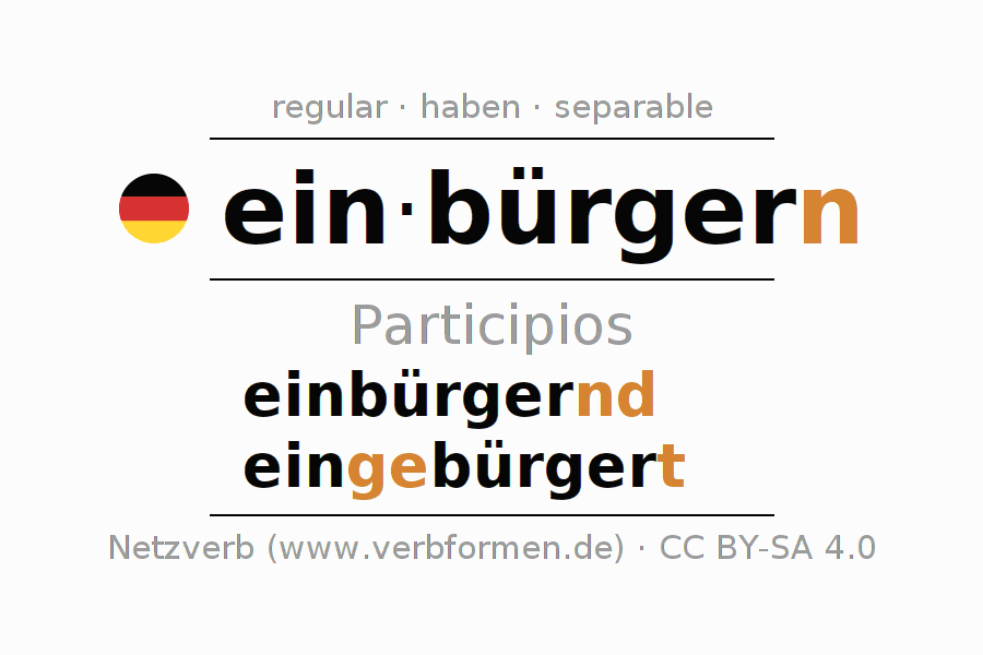 Los participios de einbürgern (naturalizar, naturalizarse) son: einbürgernd, eingebürgert