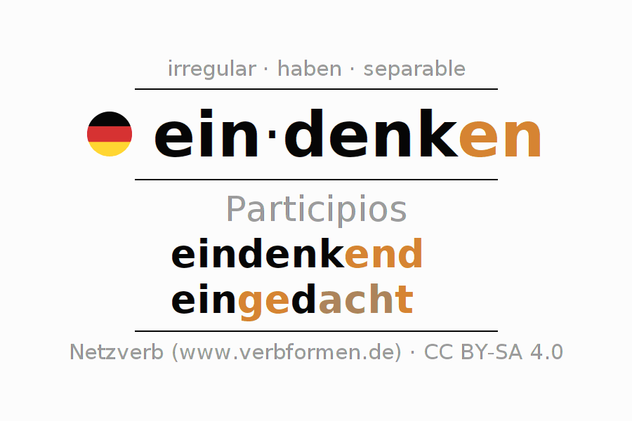 Los participios de eindenken (comprender, empatizar) son: eindenkend, eingedacht