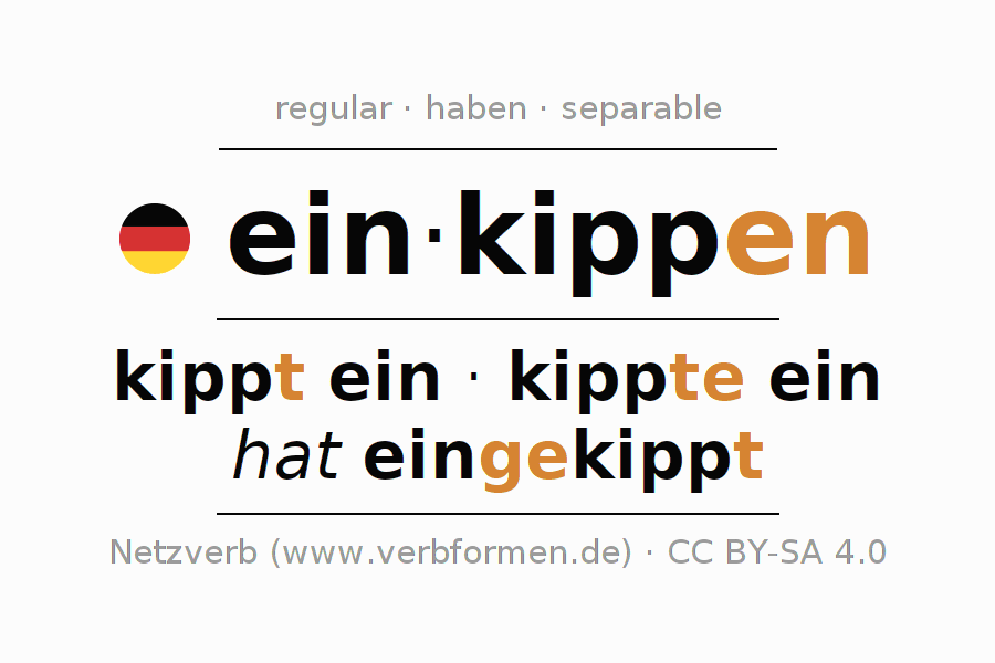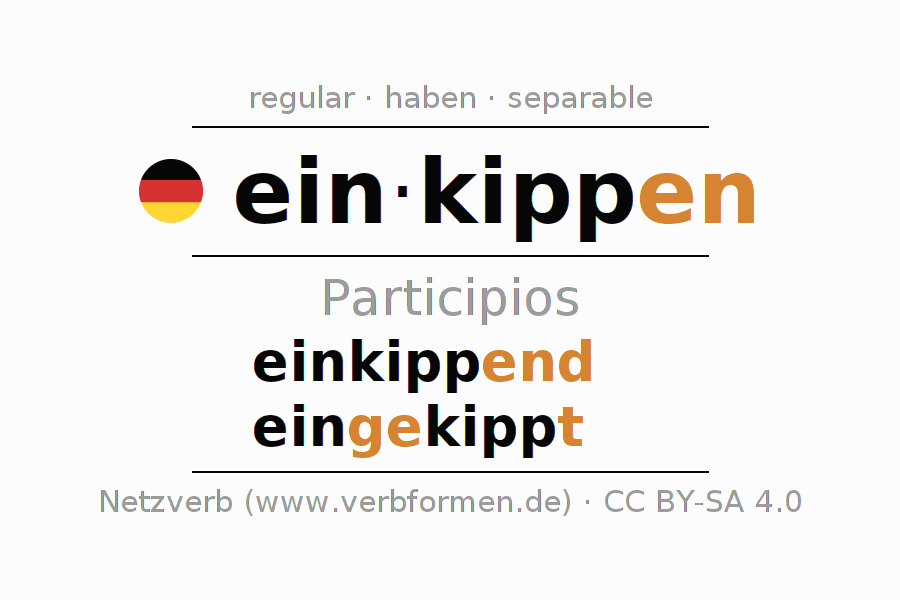 Los participios de einkippen (verter) son: einkippend, eingekippt