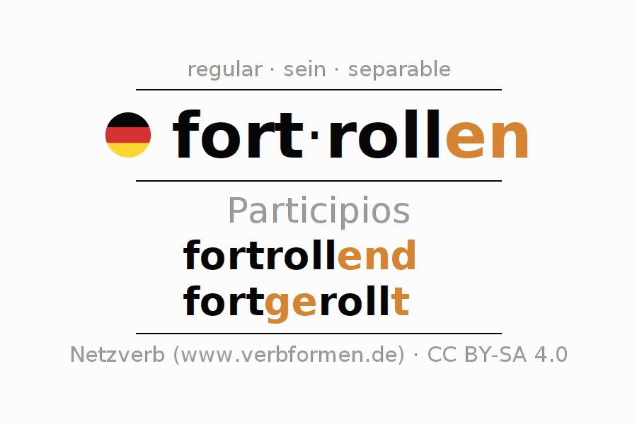 Los participios de fortrollen (desplazarse rodando, rodar) son: fortrollend, fortgerollt