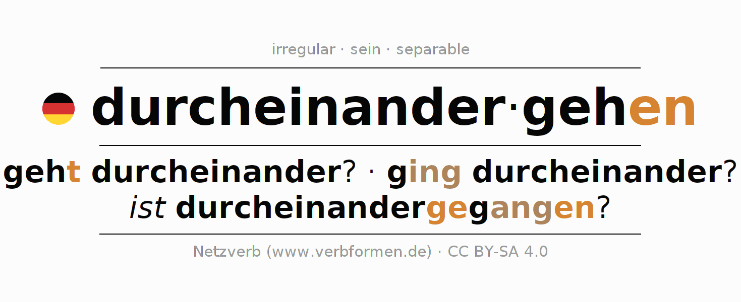 Formas verbales en Participio de durcheinandergehen