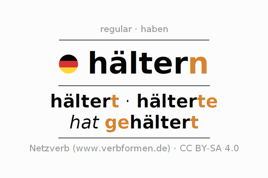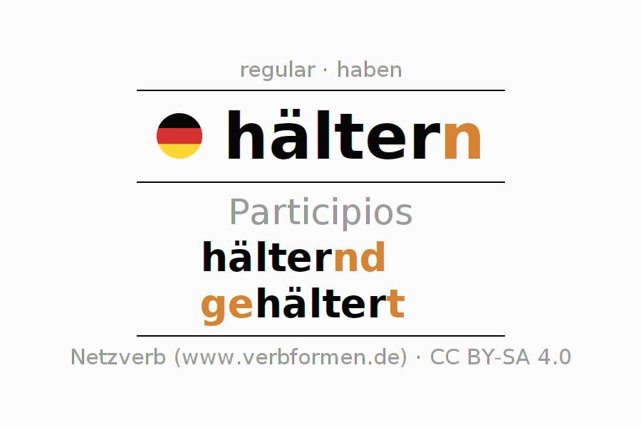 El verbo hältern, conjugado completamente en todas las personas y números gramaticales en Participio Presente Pasado perfecto.