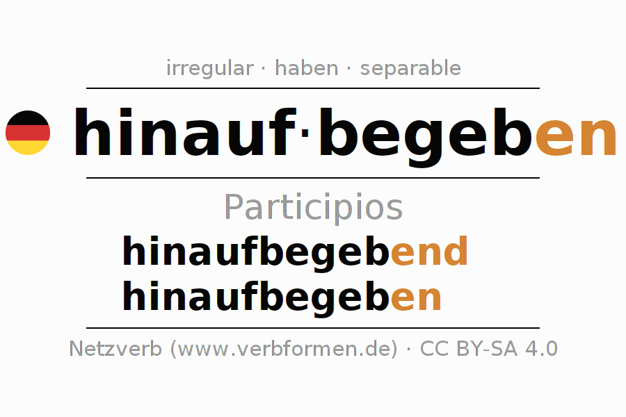 Los participios de hinaufbegeben (ascender, subir) son: hinaufbegebend, hinaufbegeben