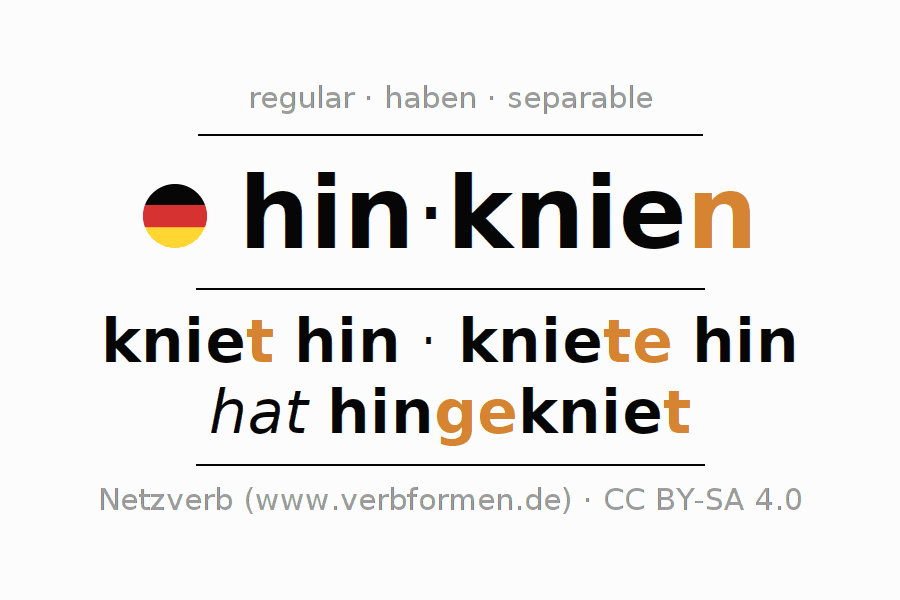 El verbo hinknien, conjugado completamente en todas las personas y números gramaticales en Participio Presente Pasado perfecto.