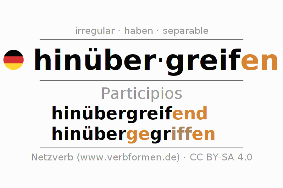 Los participios de hinübergreifen (alcanzar, pasar) son: hinübergreifend, hinübergegriffen