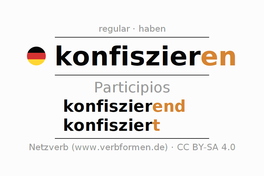 Los participios de konfiszieren (confiscar, incautar) son: konfiszierend, konfisziert