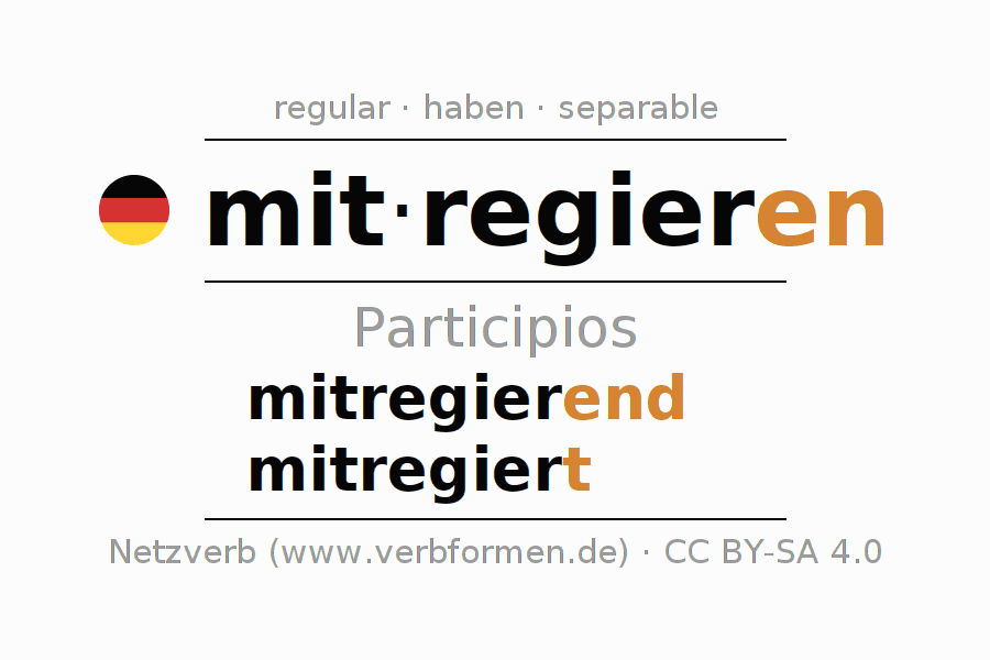 Los participios de mitregieren (co-gobernar, participar en el gobierno) son: mitregierend, mitregiert