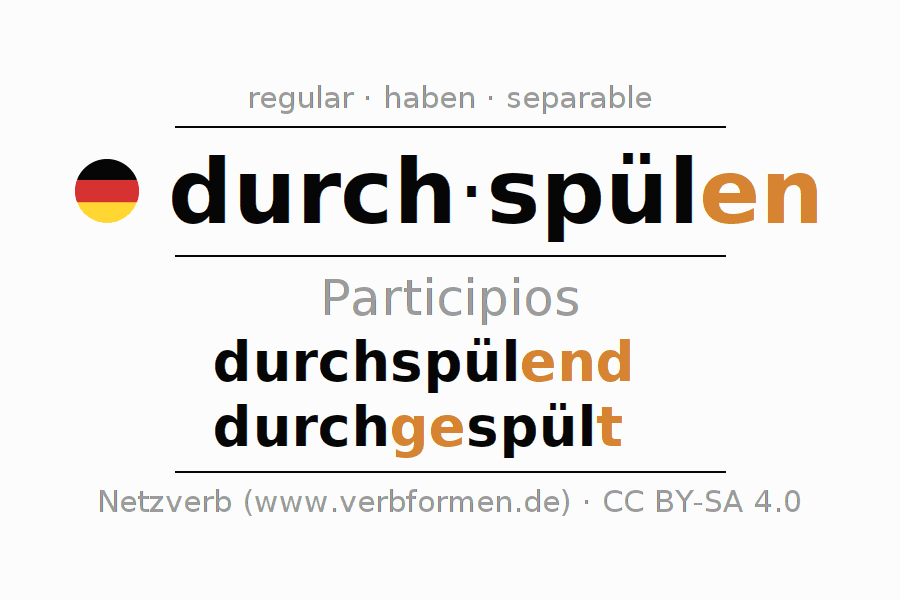 El verbo durchspülen, conjugado completamente en todas las personas y números gramaticales en Participio Presente Pasado perfecto.