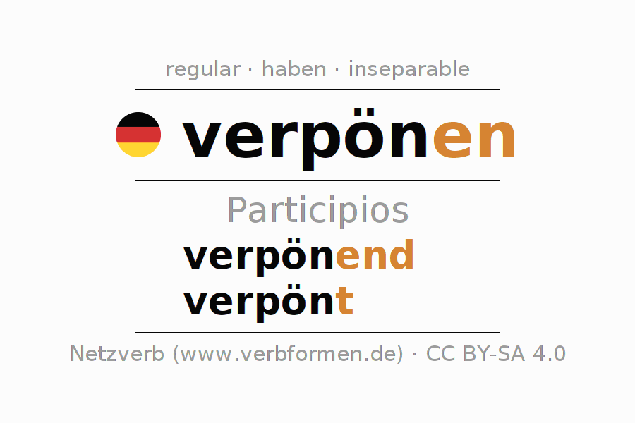 El verbo verpönen, conjugado completamente en todas las personas y números gramaticales en Participio Presente Pasado perfecto.