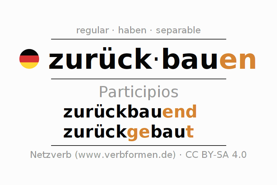 El verbo zurückbauen, conjugado completamente en todas las personas y números gramaticales en Participio Presente Pasado perfecto.