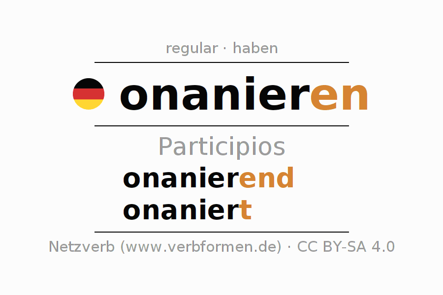 El verbo onanieren, conjugado completamente en todas las personas y números gramaticales en Participio Presente Pasado perfecto.