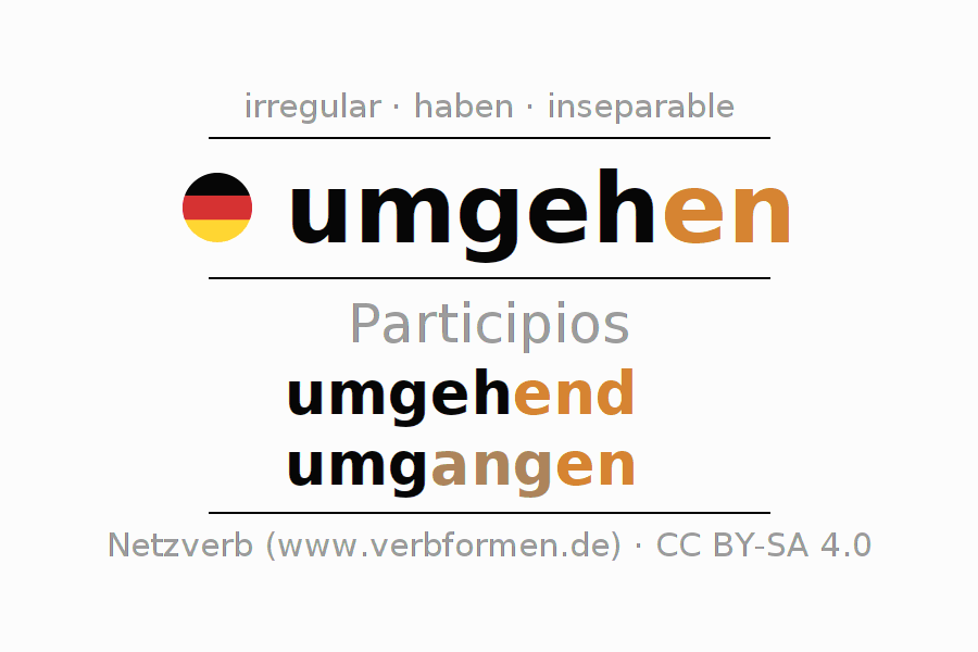 Los participios de umgehen (eludir, evitar) son: umgehend, umgangen