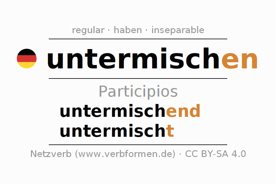 El verbo untermischen, conjugado completamente en todas las personas y números gramaticales en Participio Presente Pasado perfecto.