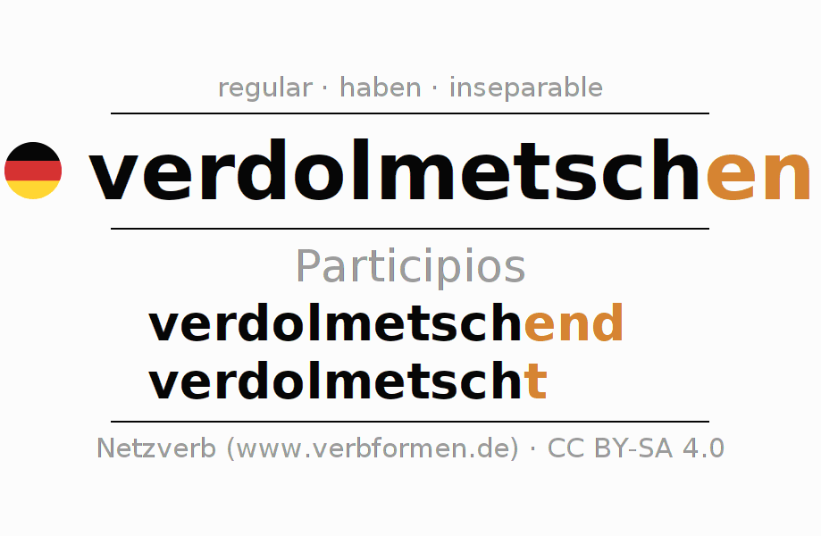 Los participios de verdolmetschen (interpretar, traducción oral) son: verdolmetschend, verdolmetscht