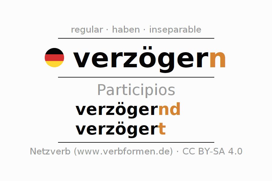 El verbo verzögern, conjugado completamente en todas las personas y números gramaticales en Participio Presente Pasado perfecto.