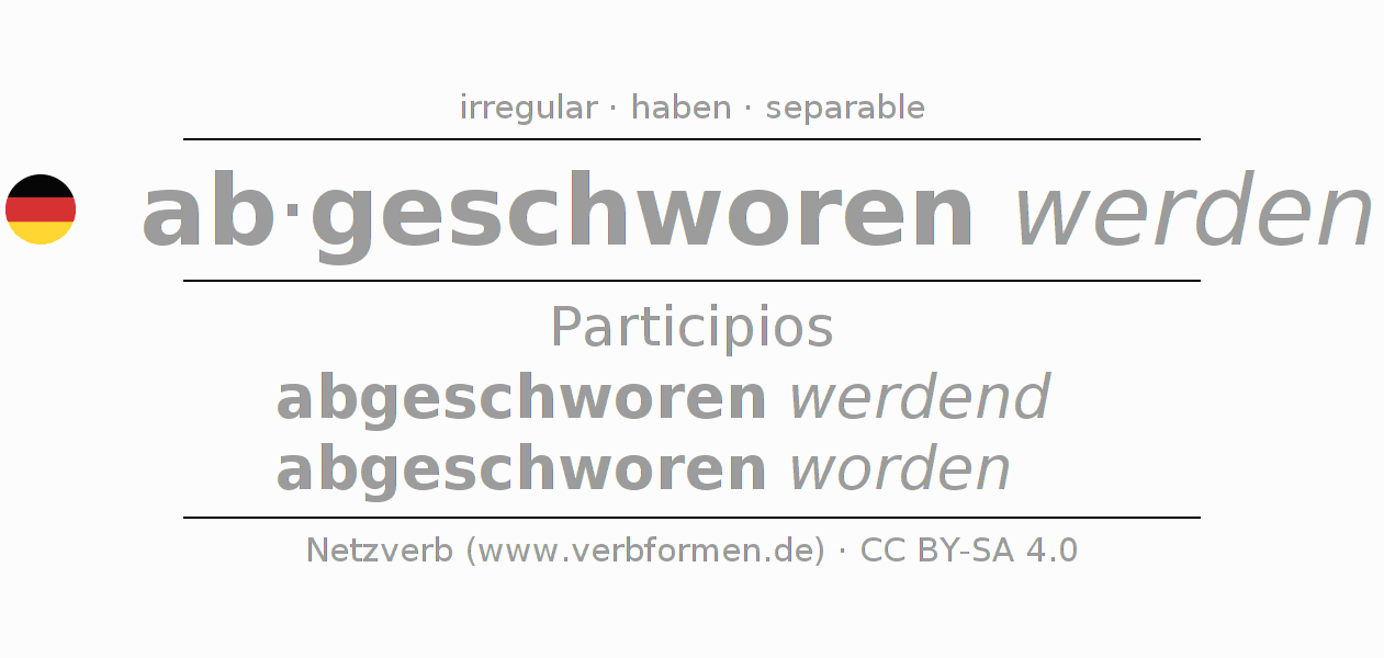 El verbo abschwören, conjugado completamente en todas las personas y números gramaticales en Participio Presente Pasado perfecto.