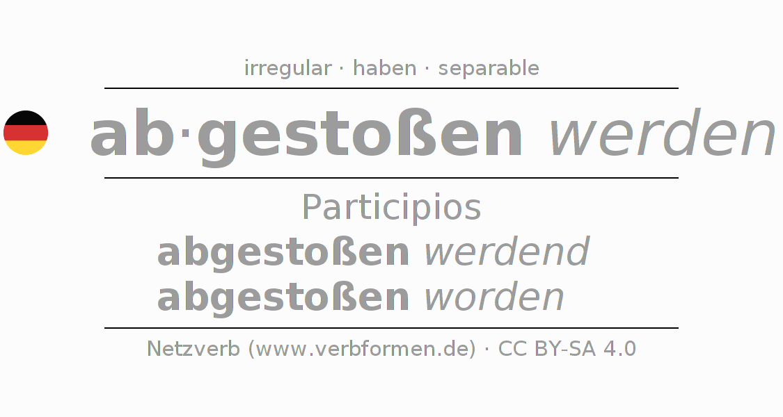 El verbo abstoßen (hat), conjugado completamente en todas las personas y números gramaticales en Participio Presente Pasado perfecto.