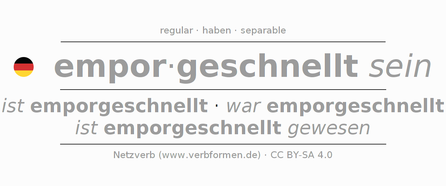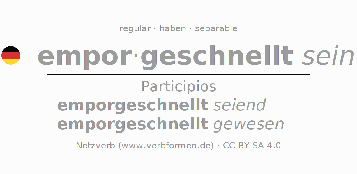 El verbo emporschnellen (hat), conjugado completamente en todas las personas y números gramaticales en Participio Presente Pasado perfecto.