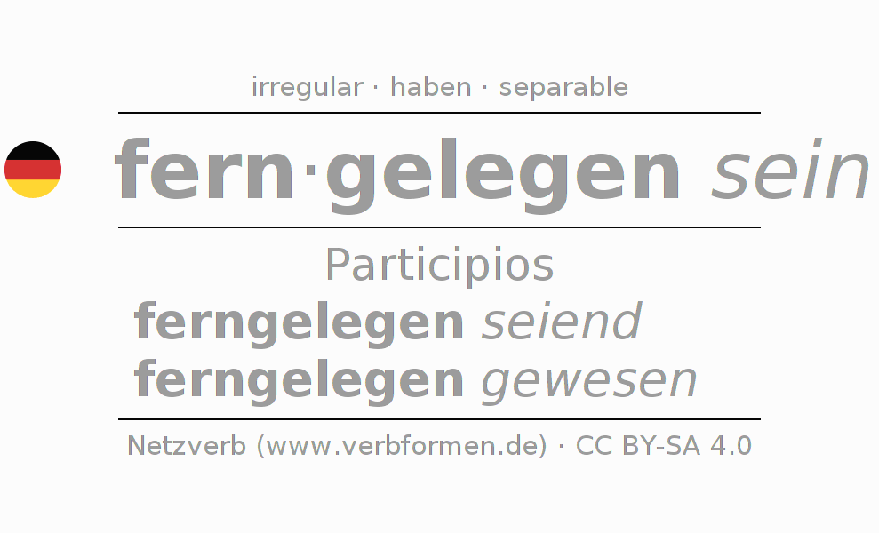 El verbo fernliegen, conjugado completamente en todas las personas y números gramaticales en Participio Presente Pasado perfecto.