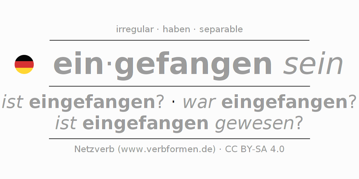 El verbo einfangen, conjugado completamente en todas las personas y números gramaticales en Participio Presente Pasado perfecto.