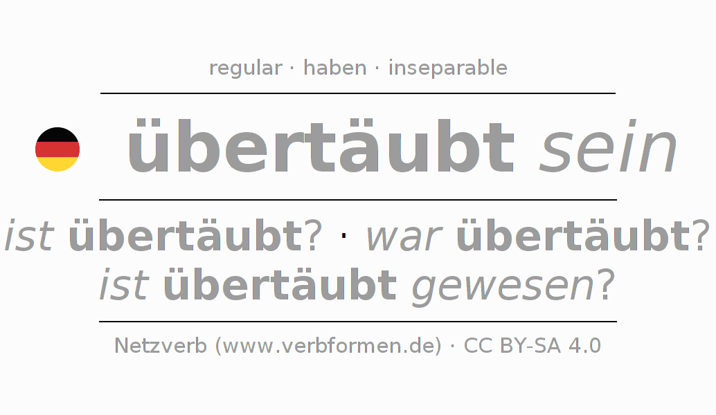 El verbo übertäuben, conjugado completamente en todas las personas y números gramaticales en Participio Presente Pasado perfecto.