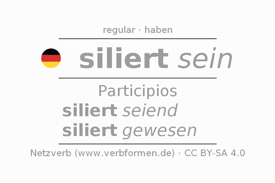 La conjugación de silieren en Participio Presente Pasado perfecto palabra del habla Pasivo situativo es siliert seiend, siliert gewesen.Para construir esta formas se requiere seguir algunas reglas gramaticales y también las especificaciones para la conjugación de verbos simples de silieren en Participio . Comentarios ☆