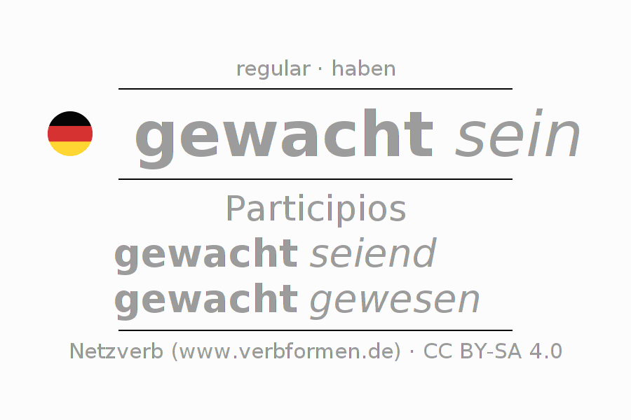 El verbo wachen, conjugado completamente en todas las personas y números gramaticales en Participio Presente Pasado perfecto.
