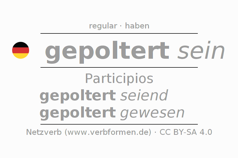 El verbo poltern (hat), conjugado completamente en todas las personas y números gramaticales en Participio Presente Pasado perfecto.