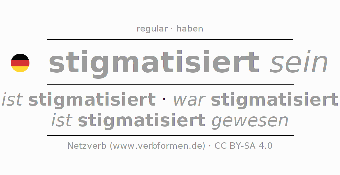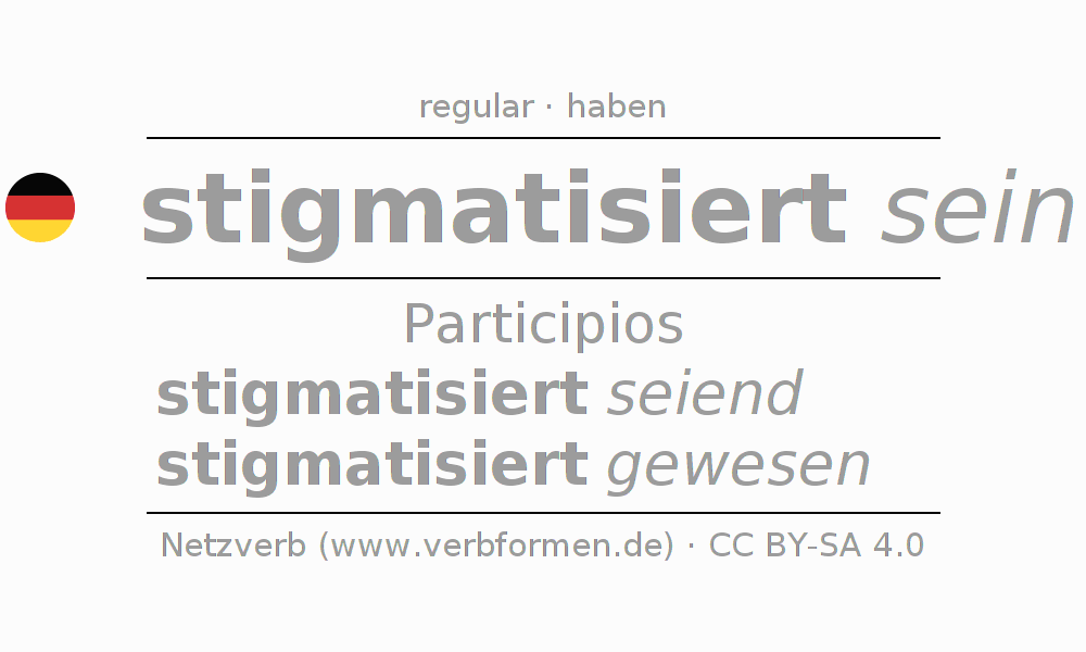 El verbo stigmatisieren, conjugado completamente en todas las personas y números gramaticales en Participio Presente Pasado perfecto.