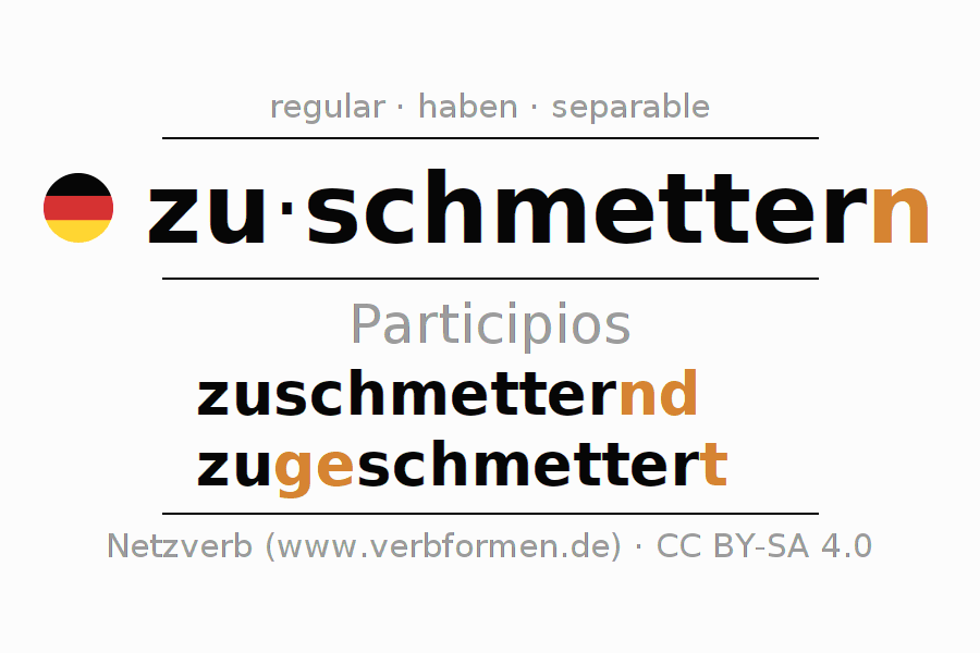 Los participios de zuschmettern (cerrar con fuerza, cerrar de golpe) son: zuschmetternd, zugeschmettert
