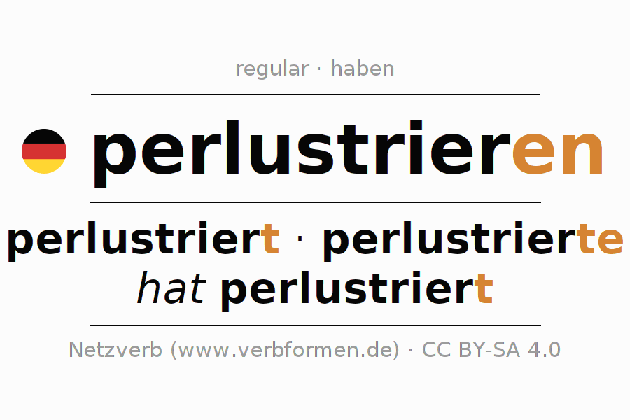 - Presente: perlustrier(e) (du), perlustrieren wir, perlustriert (ihr), perlustrieren Sie