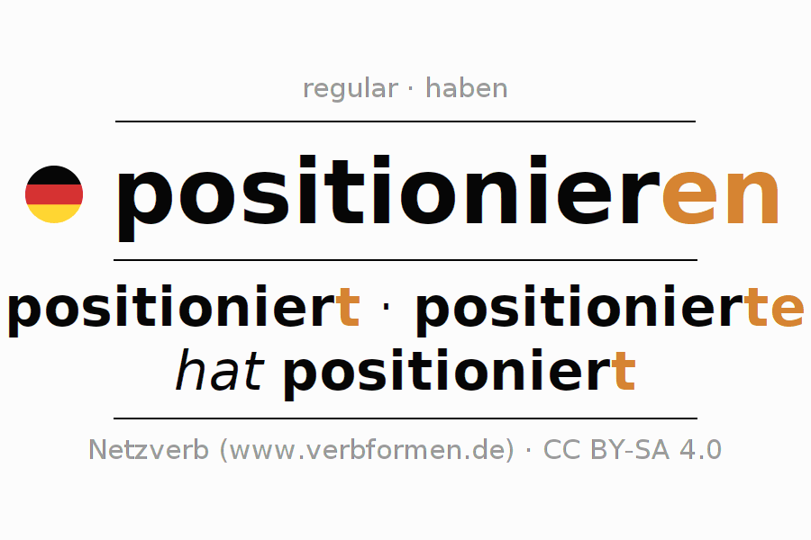 - Presente: positionier(e) (du), positionieren wir, positioniert (ihr), positionieren Sie