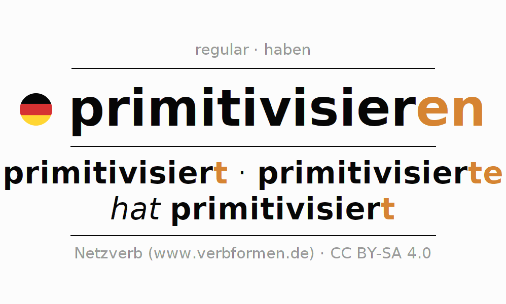 - Presente: primitivisier(e) (du), primitivisieren wir, primitivisiert (ihr), primitivisieren Sie