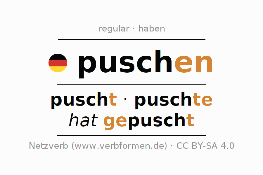 - Presente: pusch(e) (du), puschen wir, puscht (ihr), puschen Sie