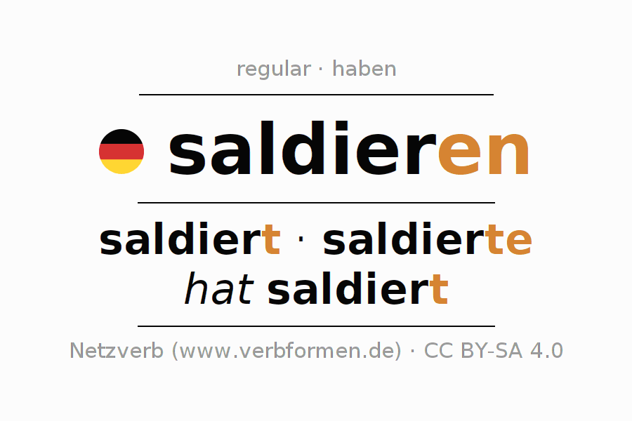 - Presente: saldier(e) (du), saldieren wir, saldiert (ihr), saldieren Sie