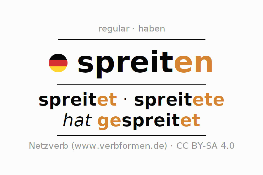- Presente: spreit(e) (du), spreiten wir, spreitet (ihr), spreiten Sie