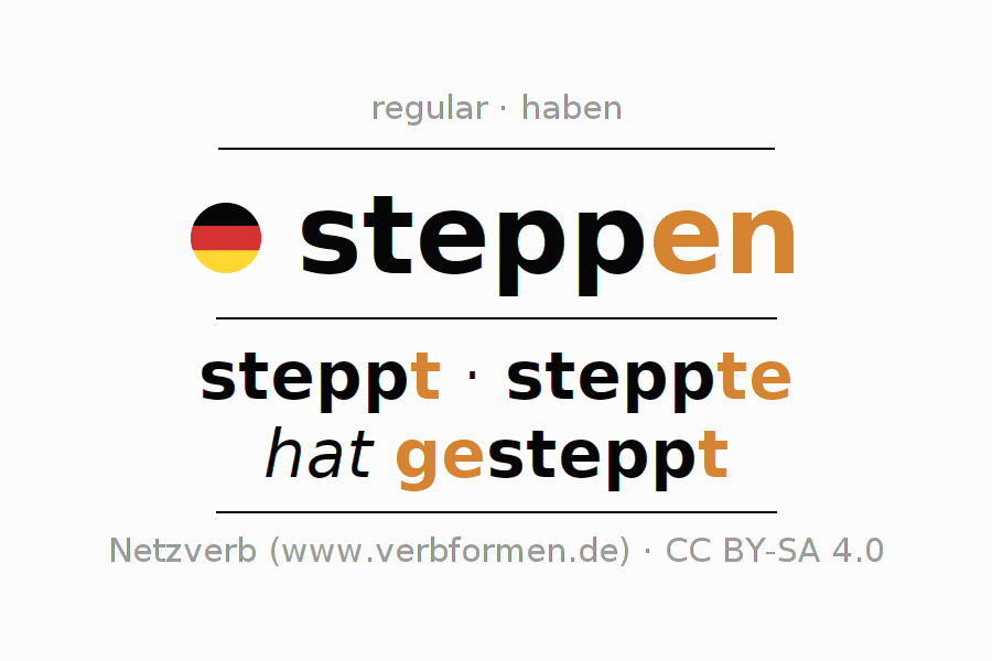 - Presente: stepp(e) (du), steppen wir, steppt (ihr), steppen Sie