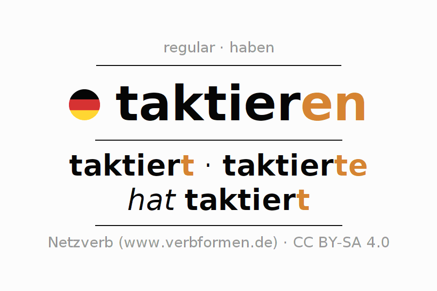 - Presente: taktier(e) (du), taktieren wir, taktiert (ihr), taktieren Sie