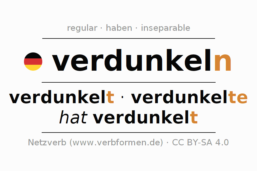 - Pasado perfecto: ich habe verdunkelt, du hast verdunkelt, er hat verdunkelt, wir haben verdunkelt, ihr habt verdunkelt, sie haben verdunkelt