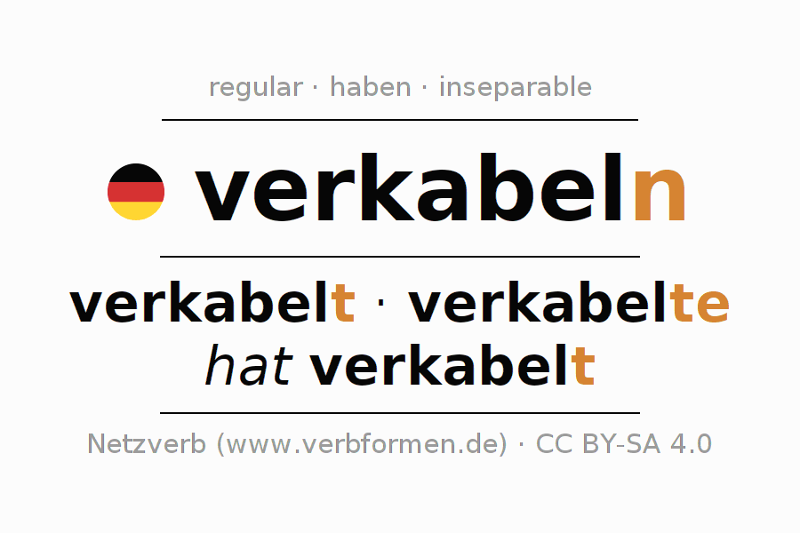 - Presente: verkab(e)l(e) (du), verkabeln wir, verkabelt (ihr), verkabeln Sie