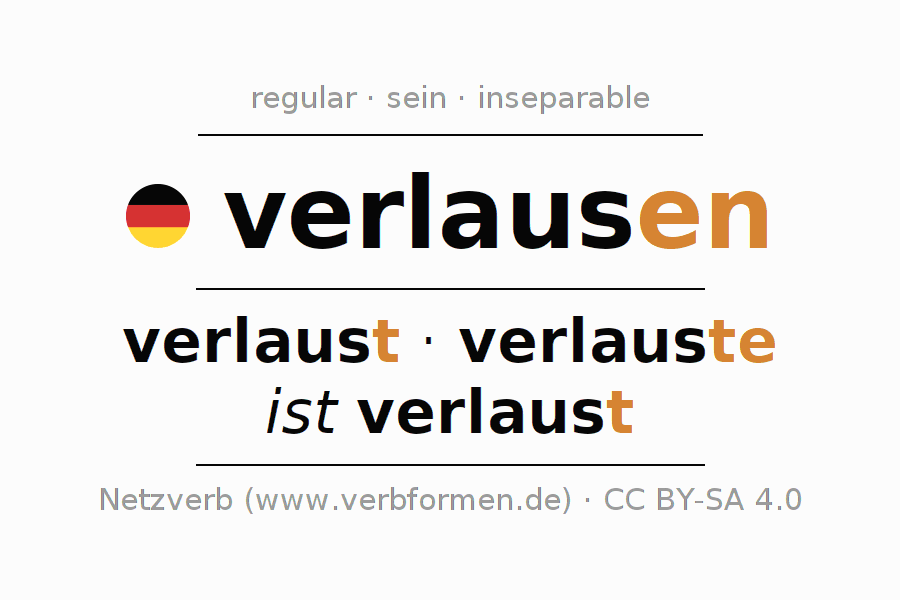 - Presente: ich verlaus(e), du verlaust, er verlaust, wir verlausen, ihr verlaust, sie verlausen