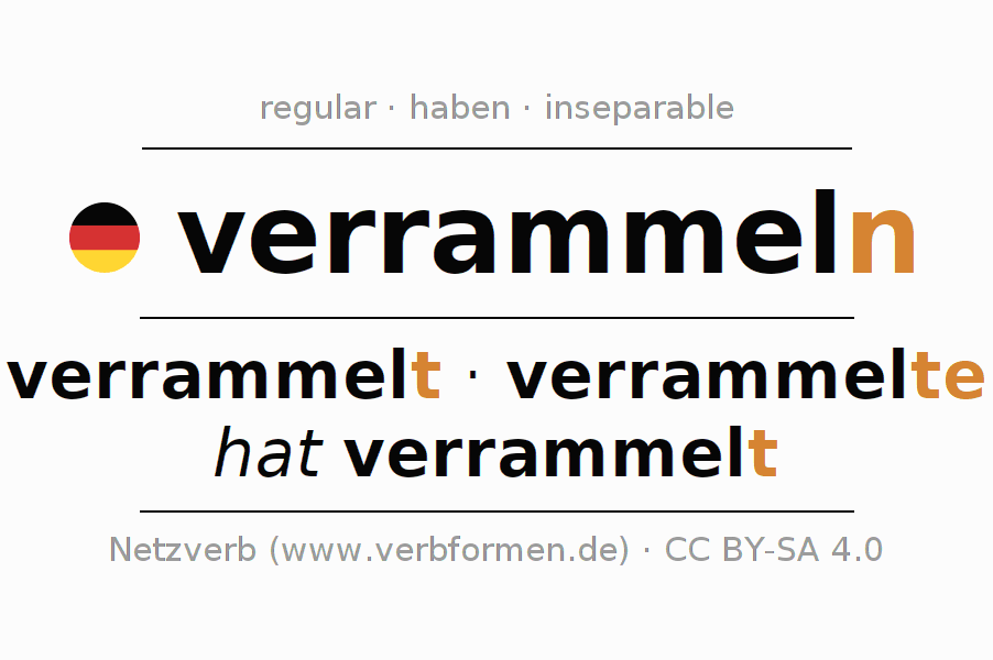 - Presente: verramm(e)l(e) (du), verrammeln wir, verrammelt (ihr), verrammeln Sie