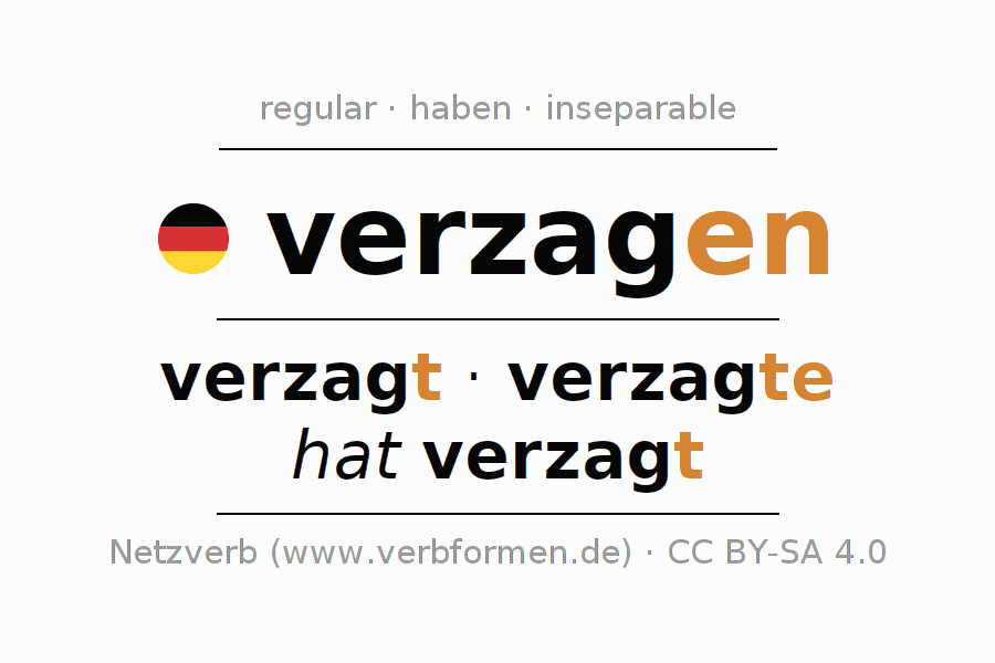 - Pasado perfecto: ich habe verzagt, du hast verzagt, er hat verzagt, wir haben verzagt, ihr habt verzagt, sie haben verzagt