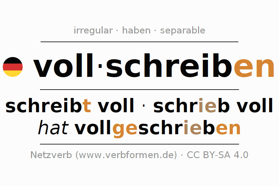 schreibt voll · schrieb voll · hat vollgeschrieben